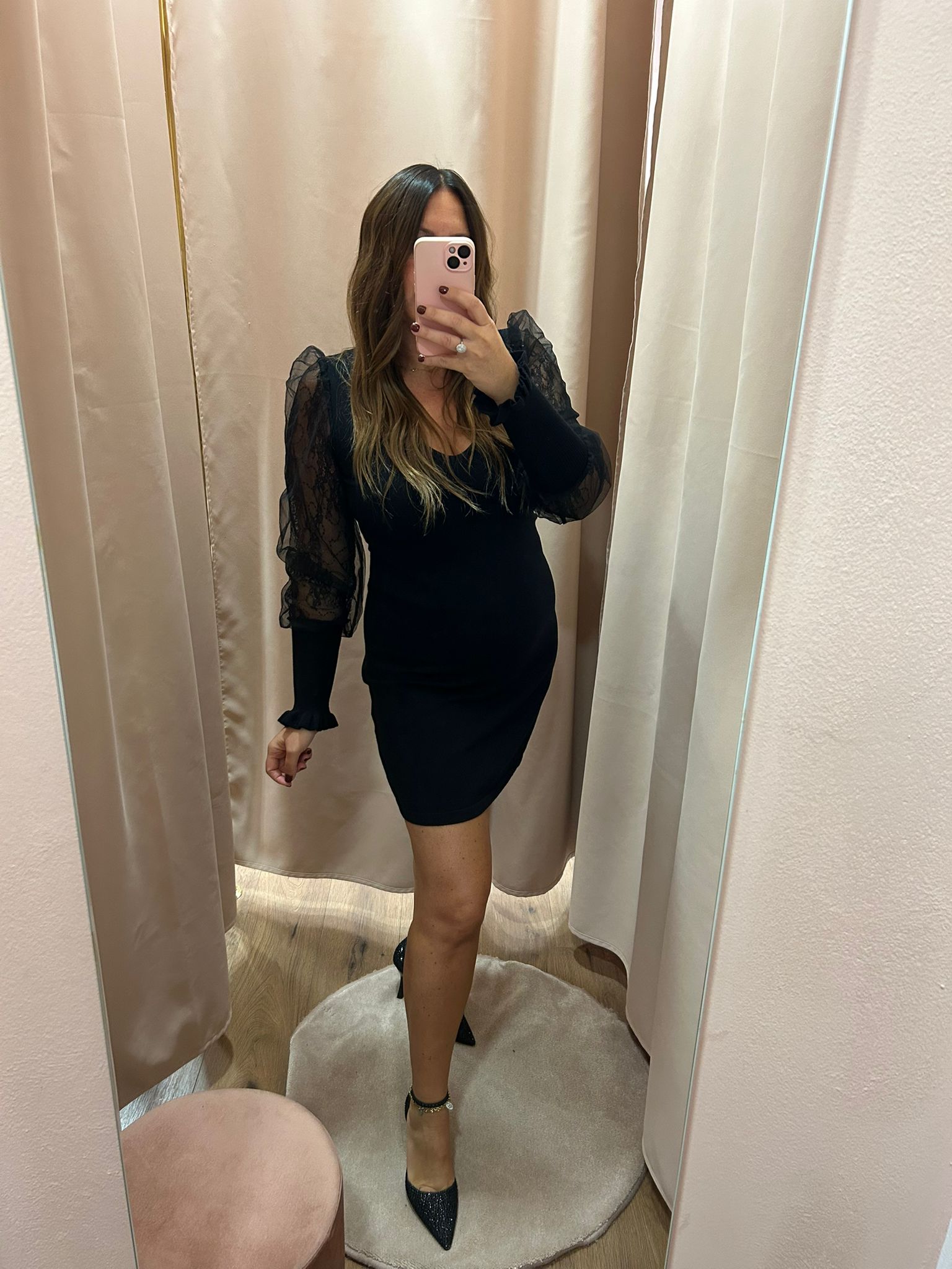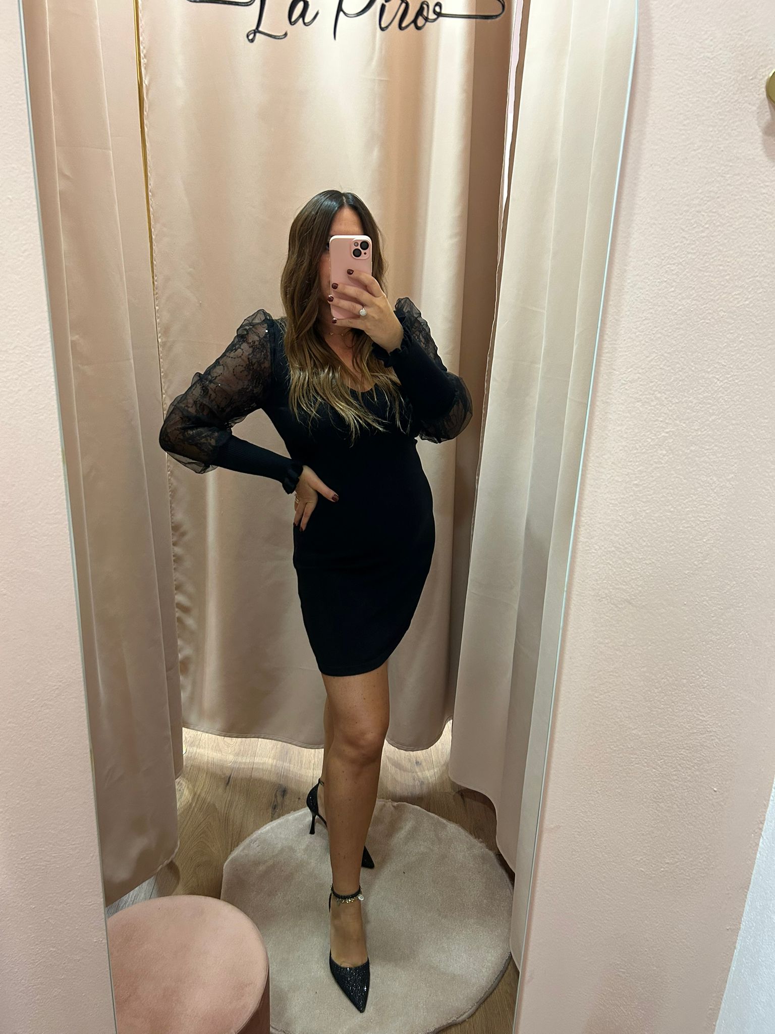 Abito in maglia con dettaglio manica in tulle e micropaillettes