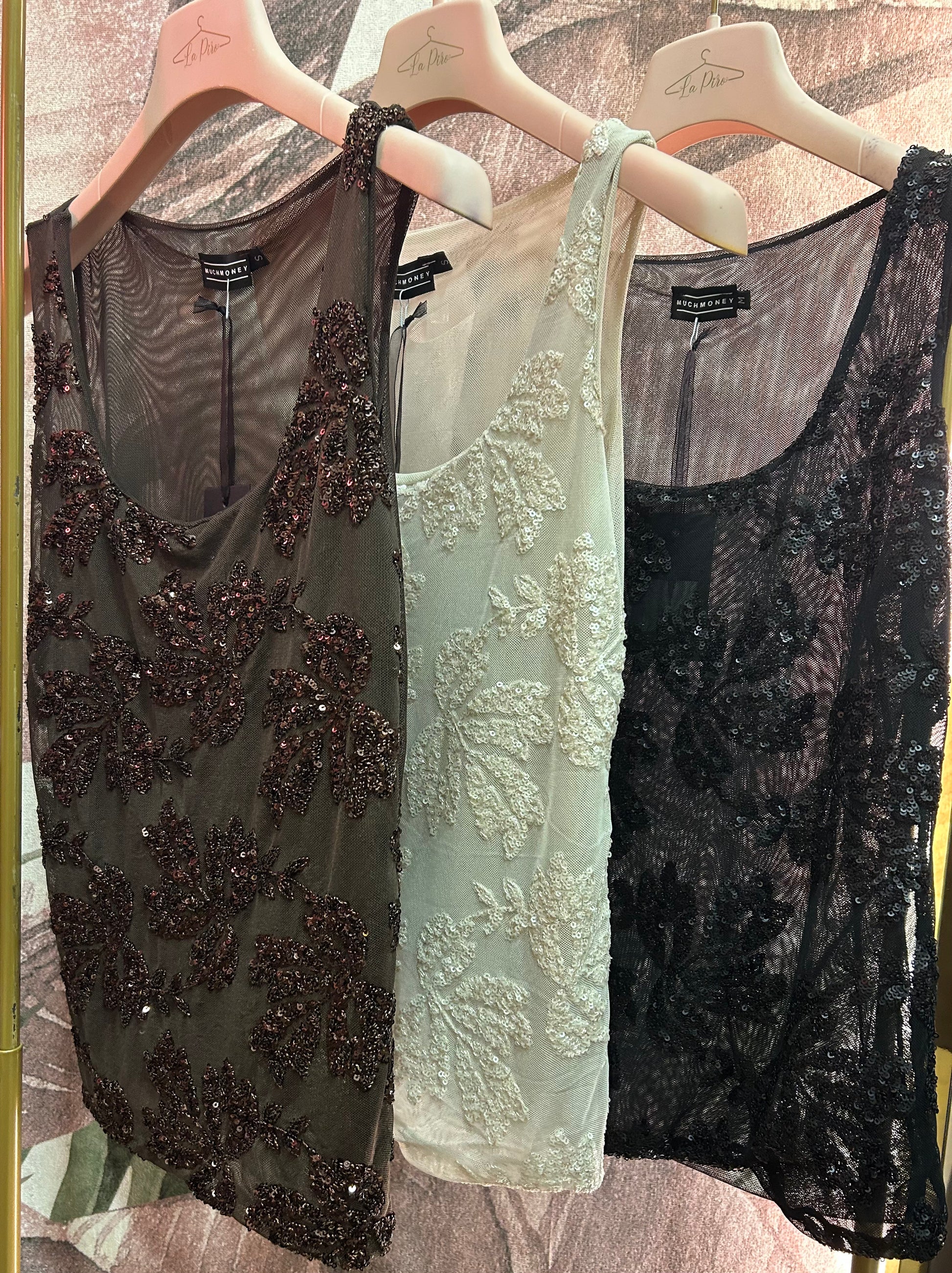 Canotta con Paillettes e Tulle