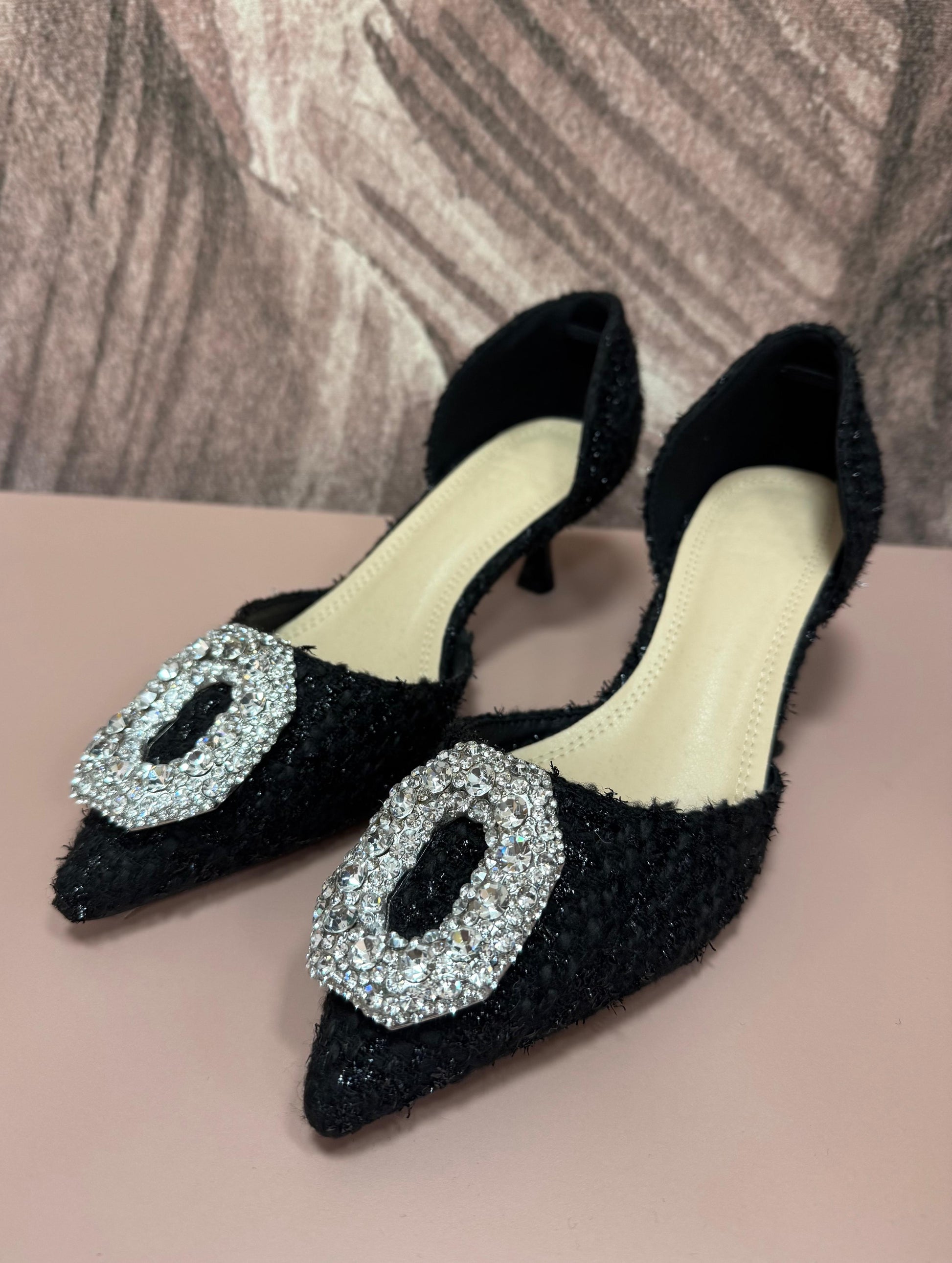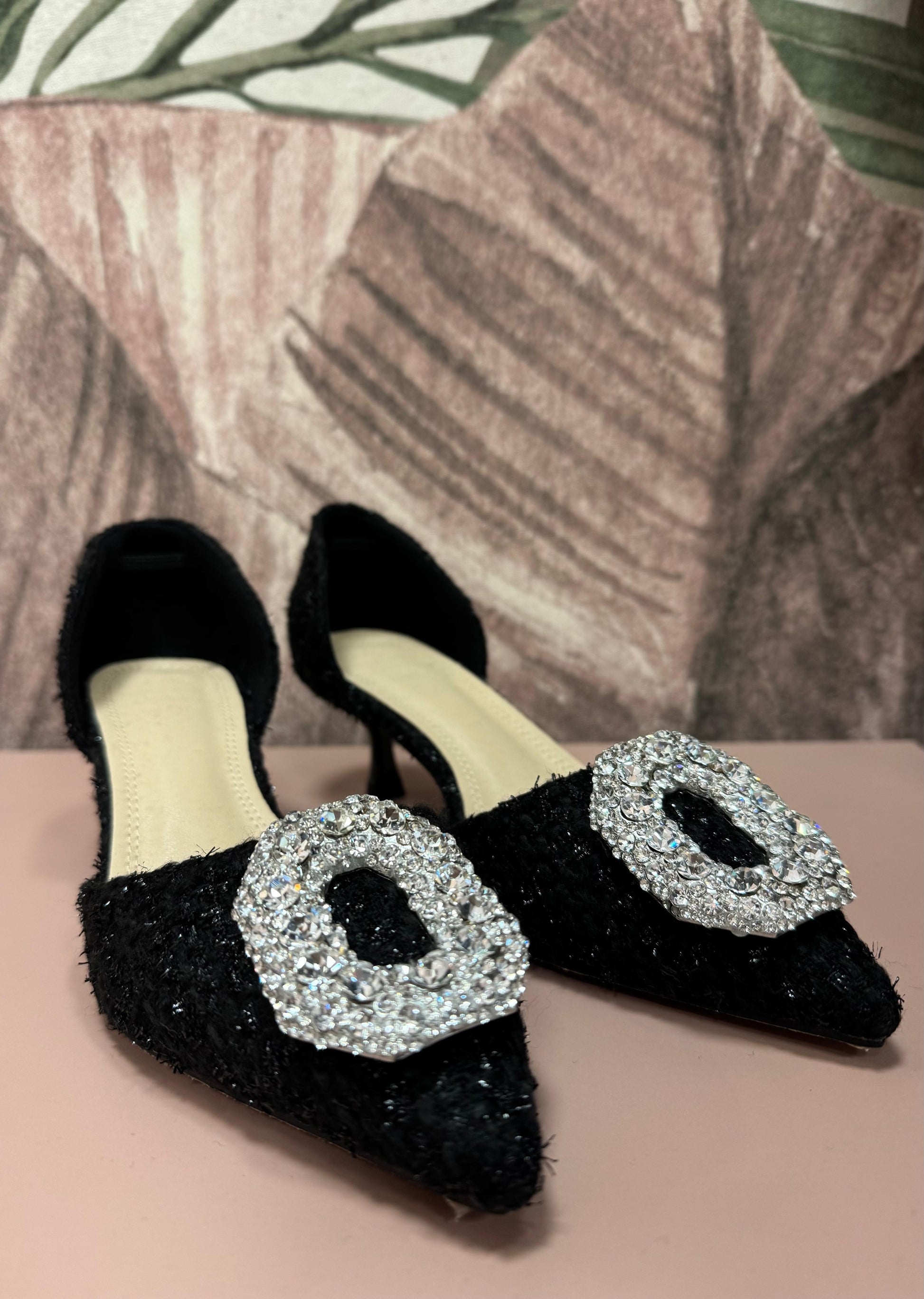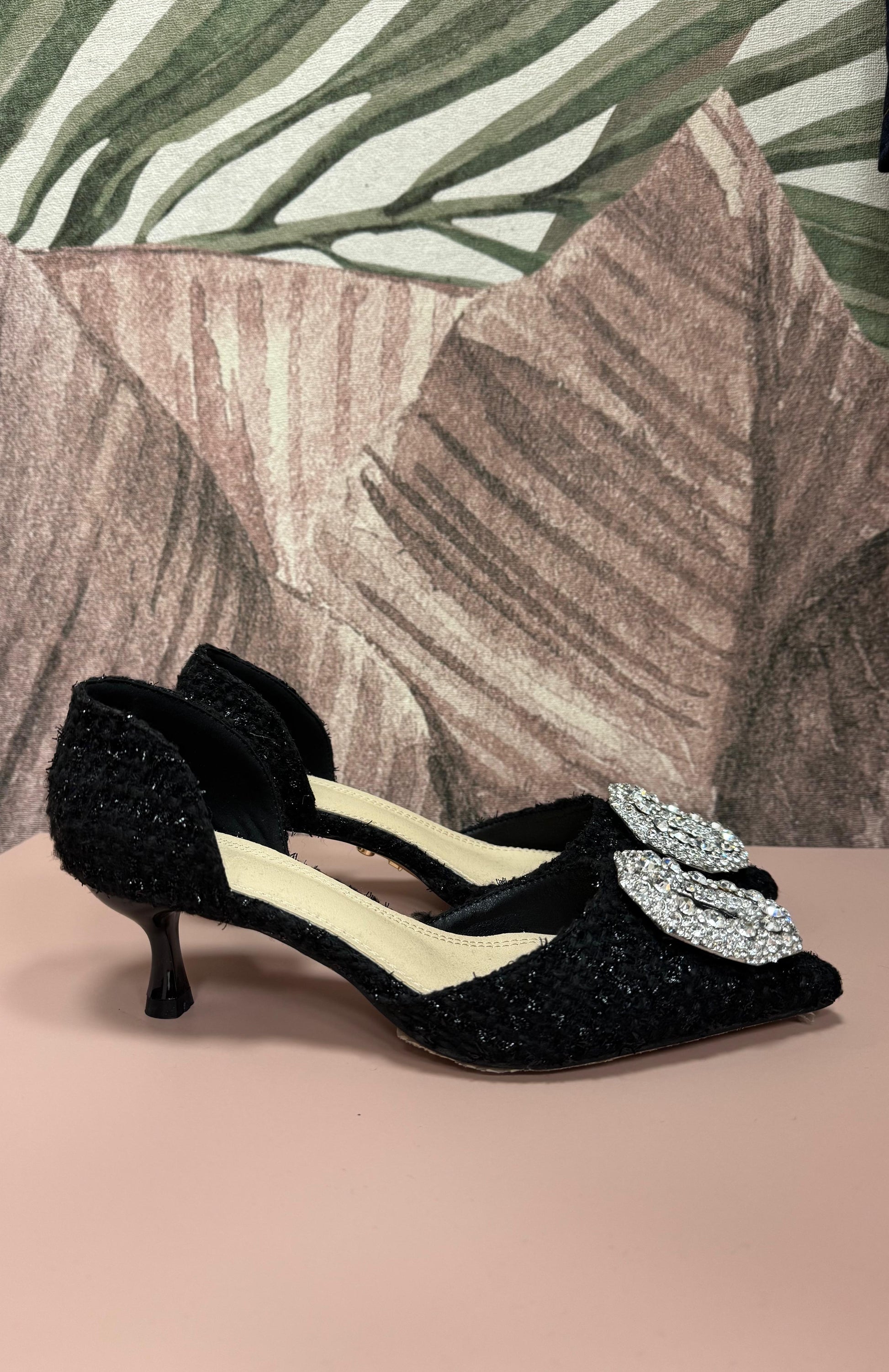 Décolleté in tessuto tweed con fibbia gioiello in punta