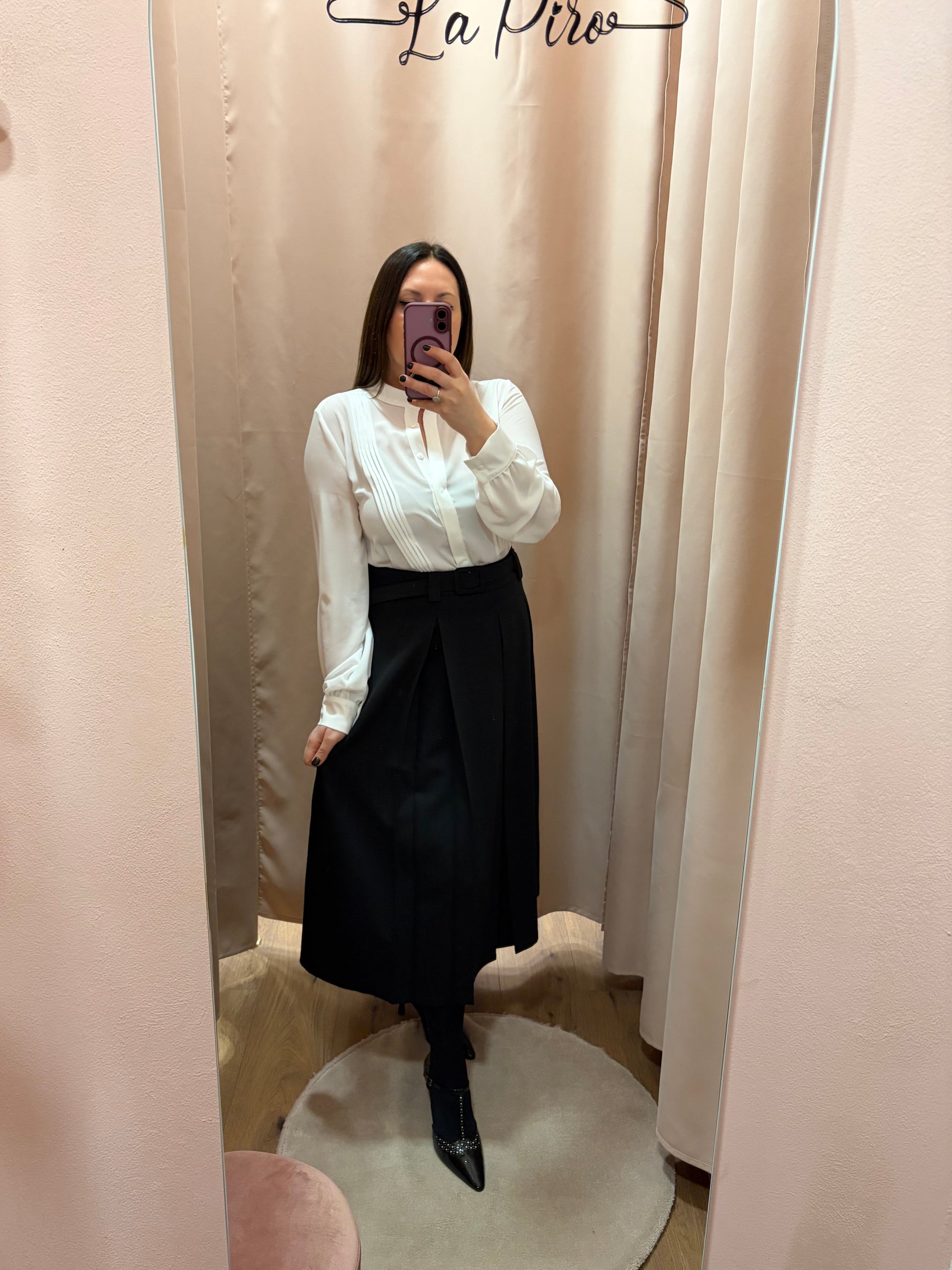 Gonna midi con pieghe e cintura