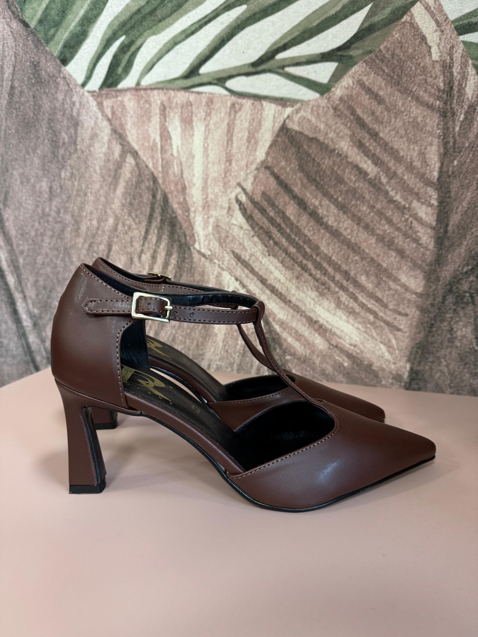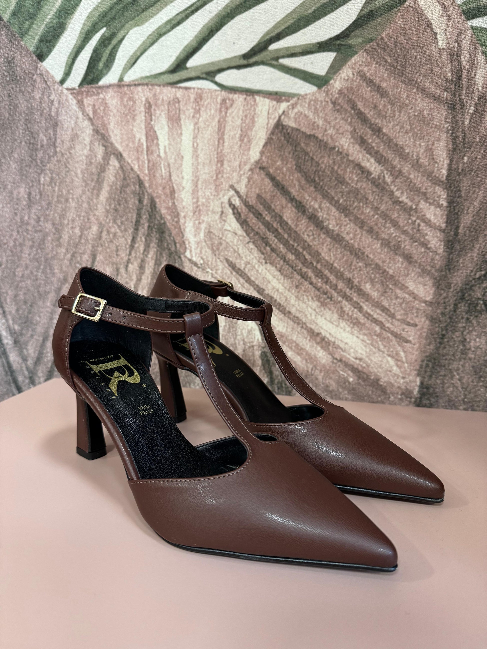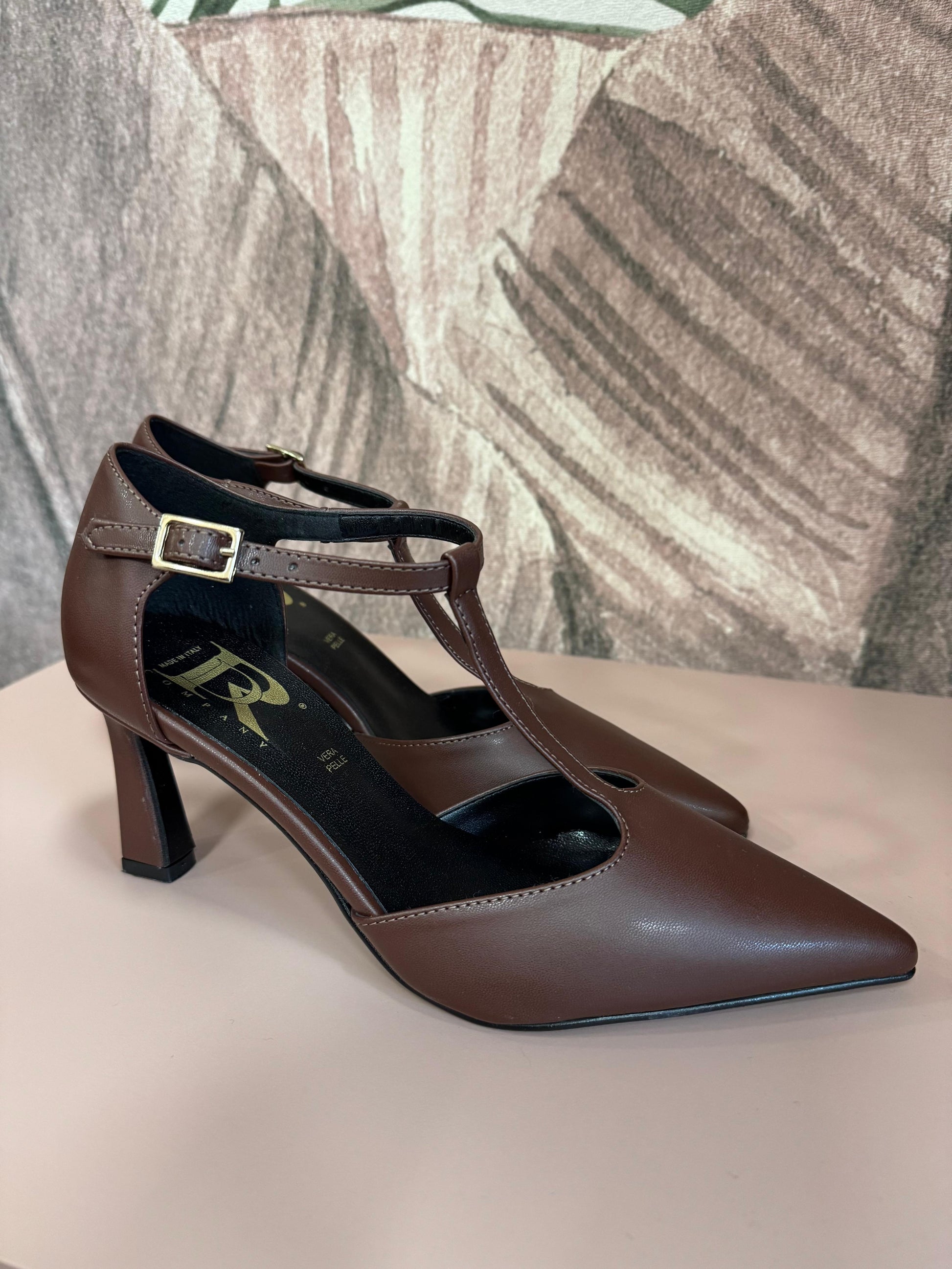 Scarpa in pelle con cinturino a T e fibbia alla caviglia