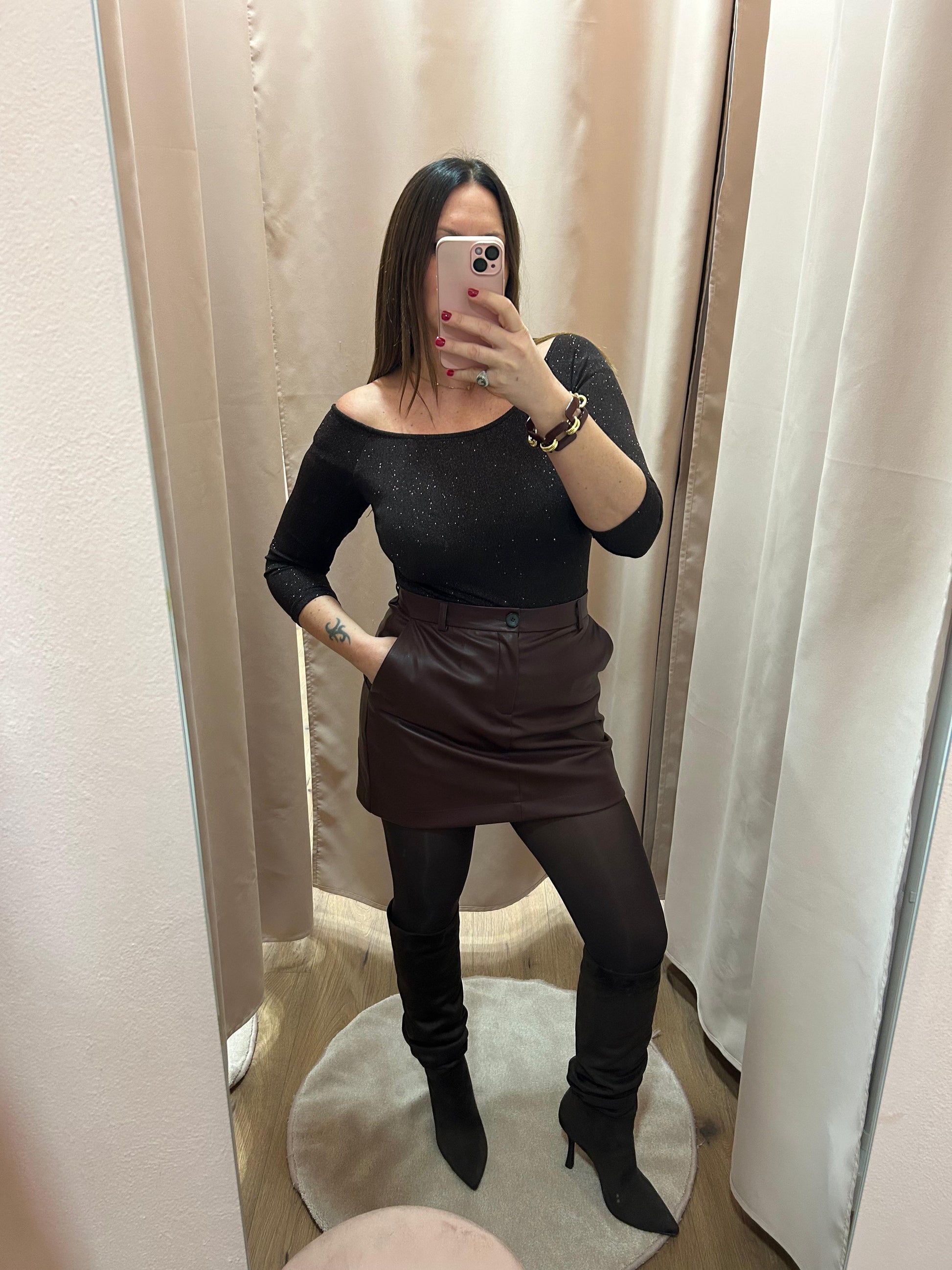 Minigonna in ecopelle con tasche laterali